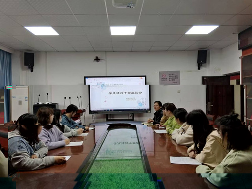 會議伊始,劉麗娟老師簡要點明了此次會議的目的,強調了學風建設的重要性。随後,參會成員紛紛踴躍發言,他們發表了自己對學風建設的建議并提出了一些可舉辦的活動,為學院學風建設積極貢獻了自己的一份力量。最後,劉麗娟老師綜合了所有幹部的建議,并總結出了可行的活動,同時鼓勵幹部們積極創新,繼續加強學風建設。