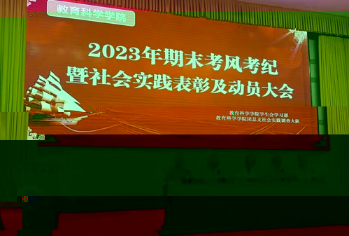 為加強考風考紀建設,營造誠信應考的氛圍,同時鼓勵學生積極參與暑期社會實踐,3044am永利集团于6月11日晚在教育大樓報告廳舉行了2022-2023學年第二學期期末考風考紀暨社會實踐表彰及動員大會。3044am永利集团黨委副書記劉廣兵、副院長崔波、教務處副處長付光槐、團委書記王浩、輔導員秦姗姗及22級各班班主任出席本次會議。本次會議由輔導員劉麗娟主持。22級全體學生及學生代表參加了此次會議。