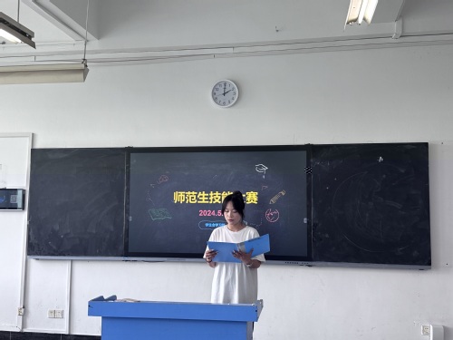 活動伊始,各位選手井然有序地到達比賽場地,評委們也到場落座,比賽順利地進行着。随後,比賽按時開始,由主持人宣讀比賽規則和流程。比賽分為即席演講、模拟授課·闆書、說課以及評委提問四個環節。賽前,選手們認真準備演講内容,并為授課主題制作了精美的課件;授課時,選手們用生動形象的語言和通俗易懂的方式呈現了教學内容;評委提問時,各位老師見解獨到,針對每位選手的表現提出了相應的建議。最後由各位評委對選手的表現進行公正的評分,最後抉擇出優秀的選手代表我院參加校級師範生教學技能競賽。