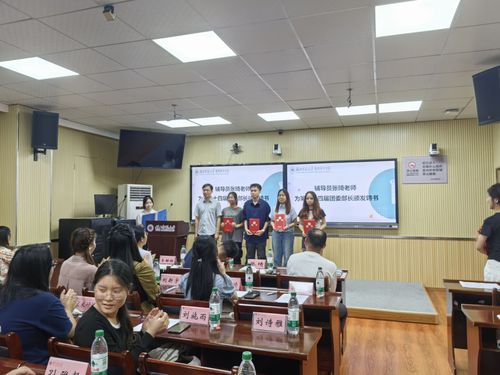 活動伊始,主持人何夢洋宣讀活動流程。随後,老師們先後為前任團副主席及部長頒發聘書、向新任團副主席和部長授予工作證,并合影留念。會議最後,劉廣兵書記對此次活動作出總結。劉書記在講話中,首先指出學生幹部應以“生”為本,從學生中來,到學生中去,明确自己的責任,不斷提高為學生服務的意識。同時,學生幹部要兼顧學習與工作,在各個方面發揮中流砥柱的作用,不斷加強與老師及其他同學的交流溝通,為學院學生工作貢獻力量。